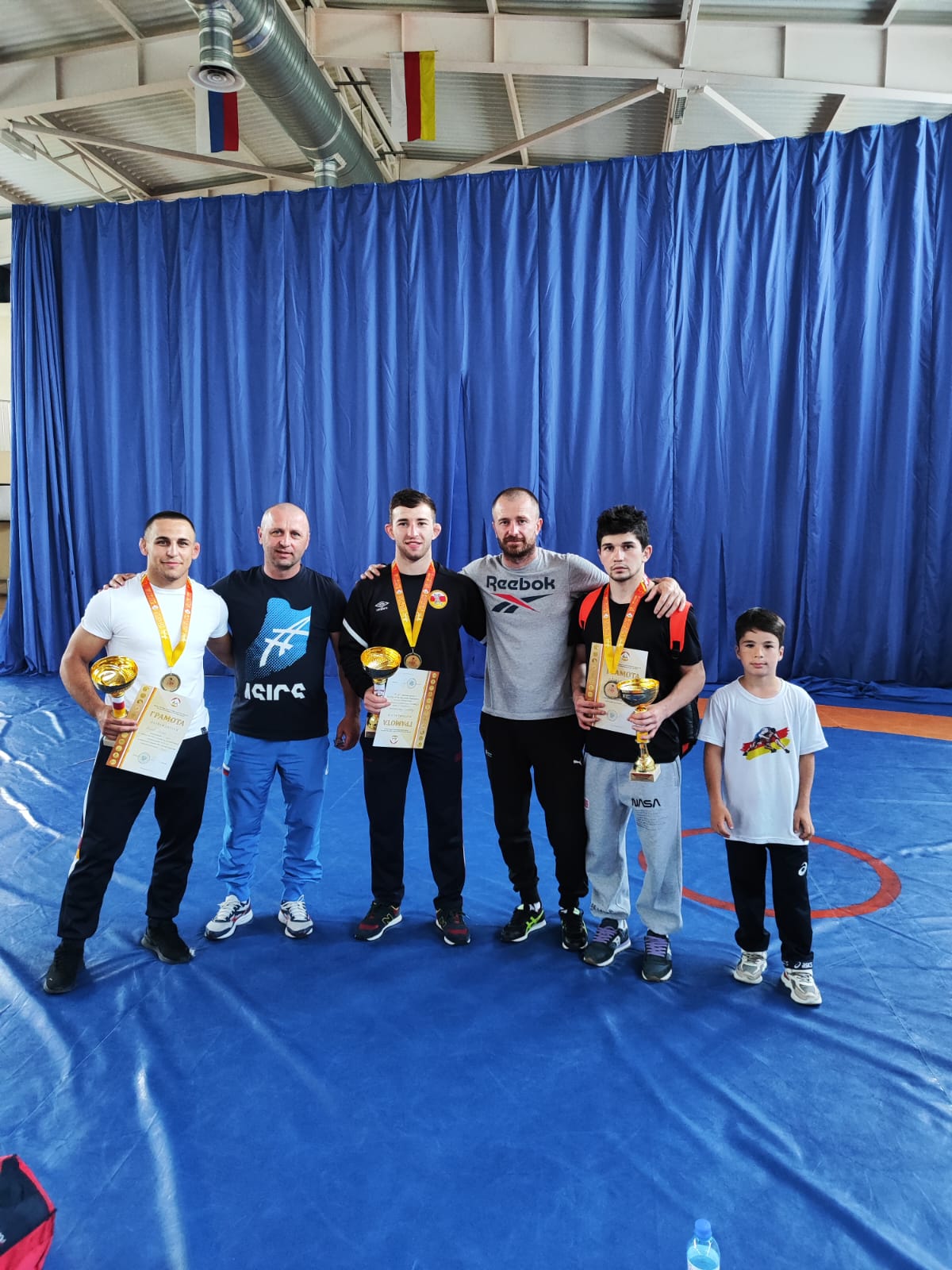 02.06.2023. Первенство РСО-Алании по вольной борьбе до 24-х лет. Чемпионы Акоев Сосланбек-57 кг. Кизинов Дзамболат- 65 кг. Калоев Сослан-74 кг. Золоев Борис-бронза, 70 кг.